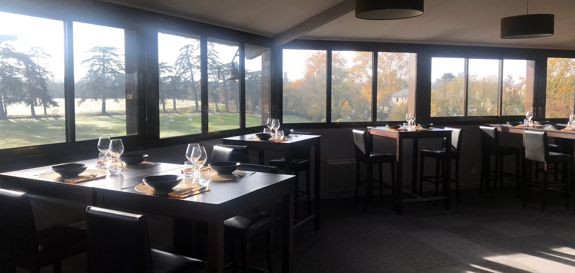 Le restaurant du Moulin est aménagédans un ancien moulin rénové, avec une vue panoramique sur le golf d'Angers